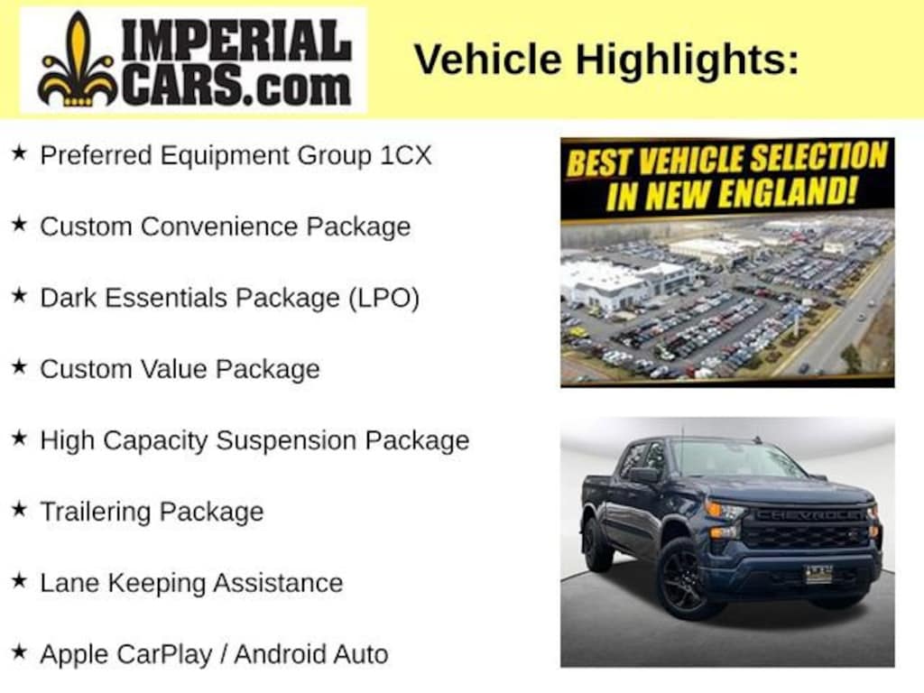 The Custom Convenience Package, Custom Value Package, and Dark Essentials Package further enhance the Silverado's versatility and style, while the High Capacity Suspension Package, Trailering Package, and other premium features provide the tools you need to tackle any task.