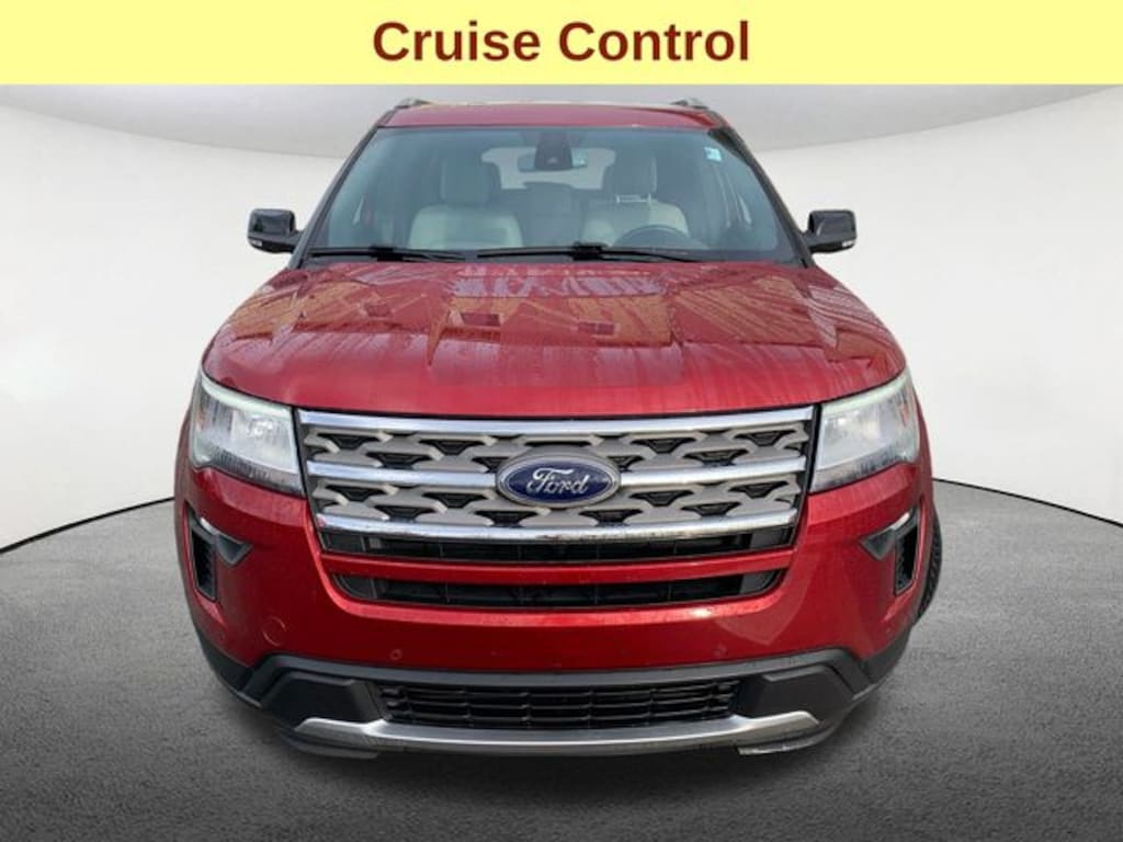 Power Leather Seats, Backup Camera, Bluetooth, Cruise Control, Power Windows, Power Locks, Steering Wheels Radio Controls, Aluminum Wheels, Luggage Rack, Third Row Seats, 4WD. Certified. Ruby Red Metallic 2018 Ford Explorer XLT 4D Sport Utility XLT 4WD 6-Speed Automatic with Select-Shift