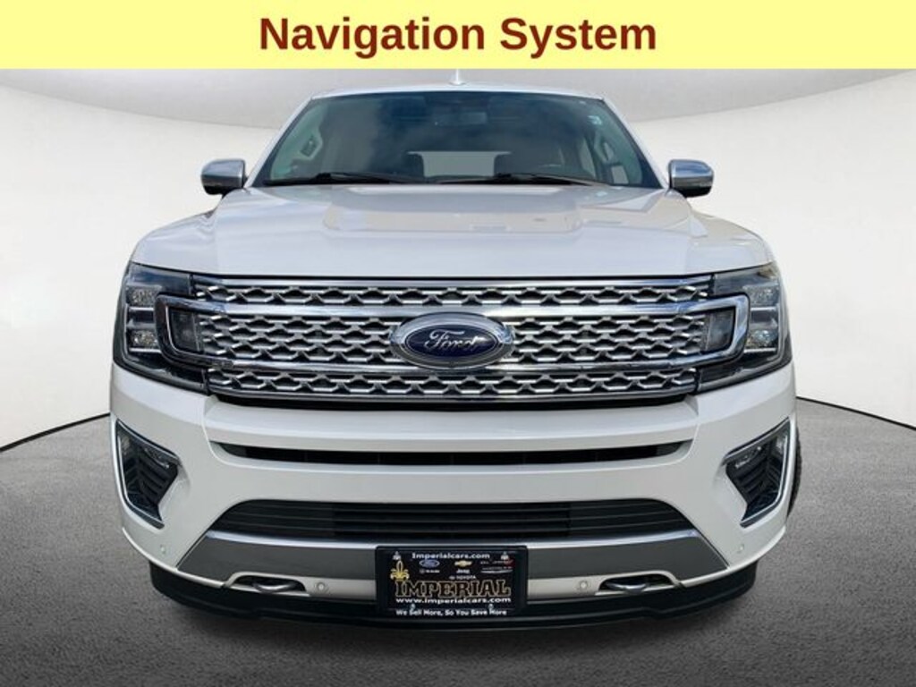 Recent Arrival! Navigation System, Sunroof / Moonroof, Blind Spot Monitor, Apple CarPlay / Android Auto, Lane Keeping Assistance, Power Leather Seats, Heated Seats, Backup Camera, Bluetooth, Cruise Control, Power Windows, Power Locks, Steering Wheels Radio Controls, Aluminum Wheels, Luggage Rack, Third Row Seats, Running Boards / Side Steps, 4WD, Electronic Limited Slip w/3.73 Axle Ratio, Equipment Group 600A, Heavy-Duty Engine Radiator, Heavy-Duty Trailer Tow Package, Integrated Trailer Brake Controller, Navigation System, Pro Trailer Backup Assist. Certified. White Platinum 2019 Ford Expedition Platinum 4D Sport Utility Platinum 4WD 10-Speed Automatic