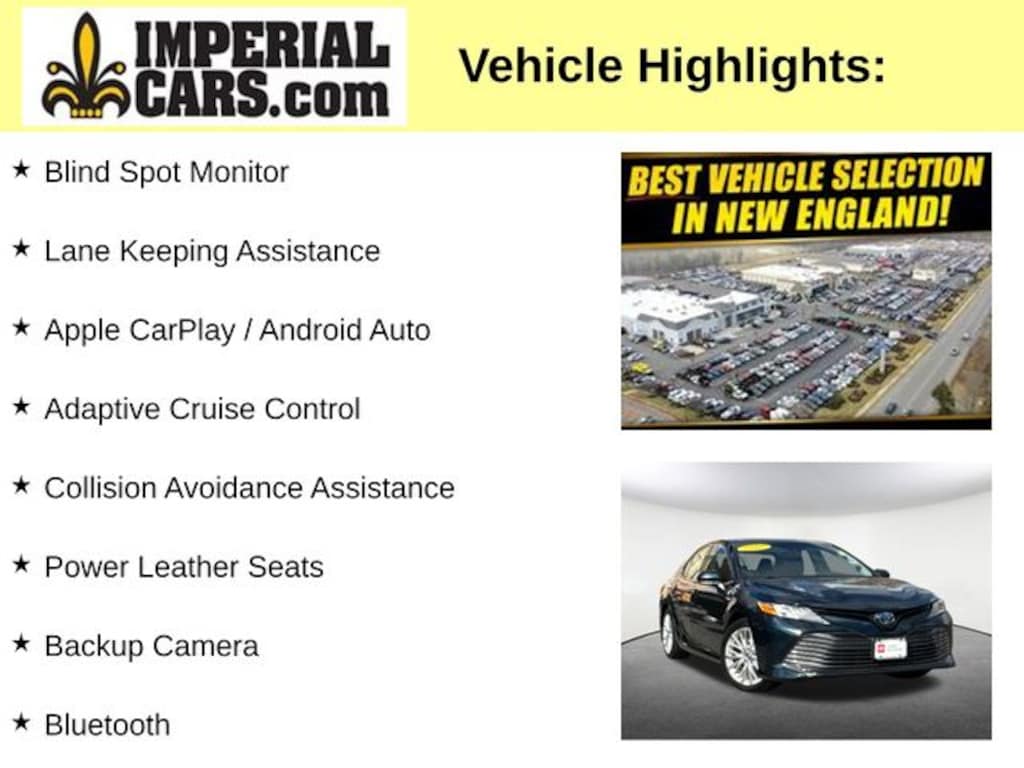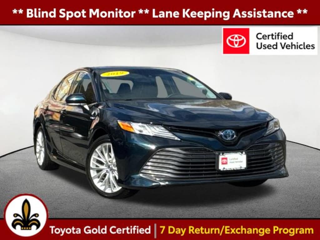 Blind Spot Monitor, Lane Keeping Assistance, Apple CarPlay / Android Auto, Adaptive Cruise Control, Collision Avoidance Assistance, Power Leather Seats, Backup Camera, Bluetooth, ** Toyota CPO Certified **, 2.5L I4 Hybrid DOHC, ABS brakes, Active Cruise Control, Alloy wheels, Compass, Electronic Stability Control, Front dual zone A/C, Heated door mirrors, Heated front seats, Illuminated entry, Low tire pressure warning, Remote keyless entry, Traction control. Certified. Blue Streak Metallic 2019 Toyota Camry Hybrid XLE XLE 4D Sedan 2.5L I4 Hybrid DOHC FWD eCVT