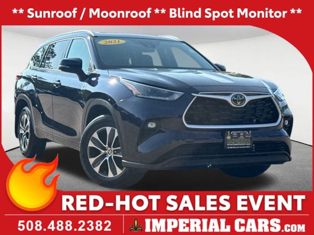 Sunroof / Moonroof, Blind Spot Monitor, Lane Keeping Assistance, Apple CarPlay / Android Auto, Collision Avoidance Assistance, Power Seats, Heated Seats, Backup Camera, Bluetooth, ** Toyota CPO Certified **, Cruise Control, Power Windows, Power Locks, Steering Wheel Radio Controls, Aluminum Wheels, Luggage Rack, Third Row Seats, AWD. Certified. Blue 2021 Toyota Highlander XLE XLE 4D Sport Utility 3.5L V6 DOHC AWD 8-Speed Automatic