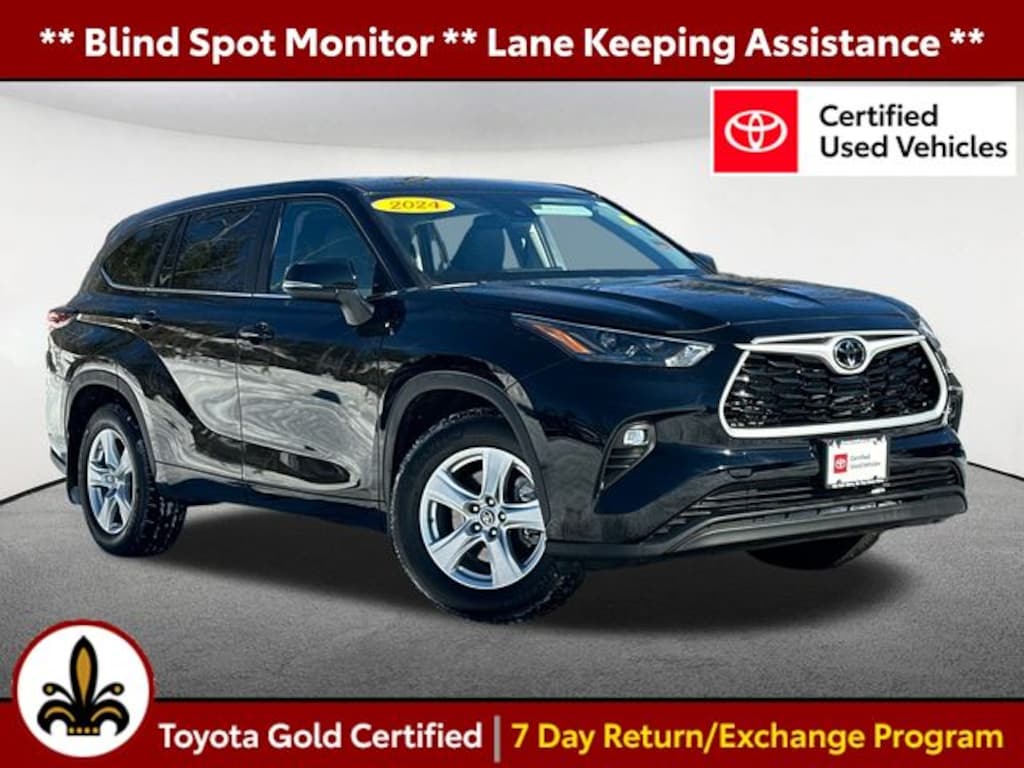 Discover the exceptional value and unparalleled versatility of the 2024 Toyota Highlander LE. Schedule a test drive today and experience the perfect balance of power, technology, and comfort that this remarkable SUV has to offer. Some of our Pre-Owned vehicles may be subject to unrepaired safety recalls. Check for a vehicleâs unrepaired recalls by VIN at http://vinrcl.safercar.gov/vin/