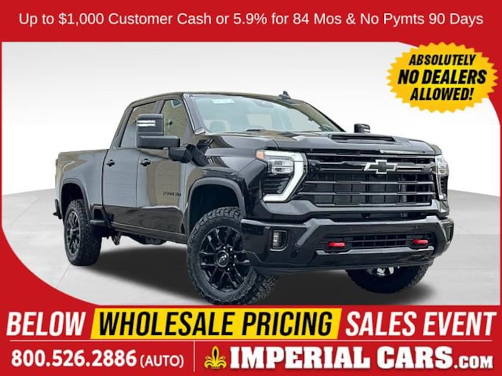 Navigation, Bluetooth®, Satellite Radio, 4x4, Alloy Wheels, Trailer Hitch, AUDIO SYSTEM, CHEVROLET INFOTAINMENT 3 PREMIUM SYSTEM, HEAT PACKAGE, Z71 OFF-ROAD PACKAGE, SEAT, UP-LEVEL REAR WITH STORAGE PACK... TAILGATE, MULTI-FLEX, SAFETY PACKAGE, LPO, ASSIST STEP AND TRUCK BED COVER.. CONVENIENCE PACKAGE II, CONVENIENCE PACKAGE, TRANSMISSION, 10-SPEED AUTOMATIC, ENGINE, 6.6L V8, AUDIO SYSTEM, CHEVROLET INFOTAINMENT.. MIRRORS, OUTSIDE POWER-ADJUSTABLE VER... REMOTE START PACKAGE, LPO, ALL-WEATHER FLOOR LINERS, TRAIL BOSS PACKAGE. Black exterior and Jet Black interior, LT trim. Warranty 5 yrs/60k Miles - Drivetrain Warranty;Keyless EntryOPTION PACKAGESTRAIL BOSS PACKAGE Includes black grille bar with Chevy Black Bow Tie, Black grille inserts, (SRI) 20 High gloss Black painted wheels, (VB5) High Gloss Black painted front bumper, (VT5) High Gloss Black painted rear bumper, (UGA) Red Tow Hooks, (QFG) LT275/65R20 BF Goodrich off-road tires, Black skid plate, Black badging, Black bowtie on horn pad, (DP6) High Gloss Black mirror caps, Black hood vent surround, High Gloss Black door handles and (CGN) Chevytec spray-on bedliner. Includes high-intensity LED headlamps and (DWI) trailer mirrors. LPO, ASSIST STEP AND TRUCK BED COVER VALUE PACKAGE II includes your choice of (VXJ) Chrome 4 round assist steps, LPO (available on 1LT/1LZ/3LZ) or (RVS) Black 4 round assist steps, LPO (available on 3LT) and (5JY) Soft Folding Truck Bed Cover by RealTruck Advantage, LPO (dealer-installed), SAFETY PACKAGE includes (UD5) Front and Rear Park Assist, (UKV) Trailer Side Blind Zone Alert, (UFG) Rear Cross Traffic Alert, (UV2) HD Surround Vision, (UVN) Bed View Camera and (TRG) Trailer Camera Provisions (Includes (UET) Trailering App. CONVENIENCE PACKAGE includes (UF2) Cargo bed LED lighting, (CJ2) dual-zone automatic climate control, (A2X) 10-way power driver seat including power lumbar, (N37) manual tilt/telescoping steering column, (T3U) LED fog lamps, CONVENIENCE PACKAGE II includes (PZ8) Hitch Guidance with Hitch View, (UET) Trailering App, (A48) rear sliding power window and (UG1) Universal Home Remote. Includes (R7O) Cloth Rear Seat with Storage Package. REMOTE START PACKAGE includes (BTV) Remote Start, (UTJ) Theft Deterrent System and (C49) rear-window defogger, Z71 OFF-ROAD PACKAGE includes (Z71) Off-Road suspension with off-road tuned twin tube Rancho shocks, (JHD) Hill Descent Control and (NZZ) skid plates (transfer case and oil pan) (Includes (QXT) LT265/70R17 all-terrainKEY FEATURES INCLUDE4x4, Satellite Radio, Bluetooth®, Trailer Hitch, Chrome Wheels.The Buy For Price reflects all applicable manufacturer rebates and/or incentives (not all will qualify) and is based on retail purchase with additional dealer discounts including a $1,000 Imperial Trade Assistance Bonus for qualifying retailable trades with less than 10 years of use from original in-service date. Our specials are available exclusively through our phone and internet department. Price subject to change if manufacturer rebates change. Lease, business and fleet acquisitions may result in a different pricing and rebate structure. Price does not include tax, title, registration, $595 documentation fee, or acquisition fee. Due to the current unprecedented market conditions, availability of some vehicles is severely restricted. Acquisition and/or replenishment of these vehicles may come at a premium price. Accordingly, some vehicles may be sold at a price higher than MSRP. Vehicle must be paid in full and take same day delivery from dealer stock. No wholesalers or dealers. Call or email our phone and internet team for the most current rebate information and Imperial discounts. Our price online is for our market area only. Price cannot be combined with any other discounts or promotions. Not responsible for typograp Price includes: $500 - Chevrolet Consumer Cash Program. Exp. 04/30/2026