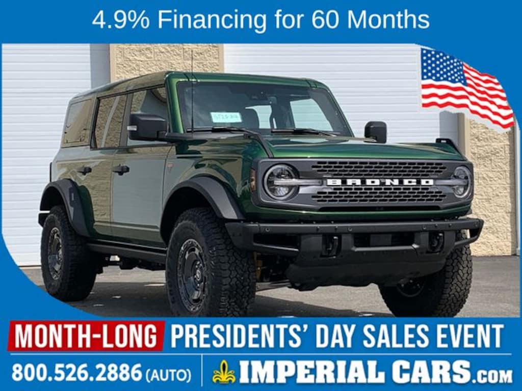 EQUIPMENT GROUP 334A LUX PACKAGE Rear Parking Sensors, Power Outlet - Back Side of Center Floor Console, Dr & Pass Illuminated Sliding Visor Vanity Mirrors, Evasive Steering Assist, Information on Demand Panel, Dual-Zone Electronic Automatic Temperature Control, air conditioning, Ford Co-Pilot360, Enables compatibility w/FordPass performance app w/off-road navigation, Auto High-Beam Headlamps, Pre-Collision Assist w/Automatic Emergency Braking, pedestrian detection, forward collision warning and dynamic brake support, Blind Spot Information System (BLIS), Cross-Traffic Alert, Rear View Camera, backup assist grid lines, Lane-Keeping System, Lane-Keeping Alert, Lane-Keeping Aid and Driver Alert, Ambient Footwell Lighting, 2-Door Intelligent Access w/Lock/Unlock, Intelligent Access will also, SASQUATCH PACKAGE Wheels: 17 Carbonized Gray Painted Aluminum, High Clearance Fender Flares, High Clearance Suspension, 4.7 Final Drive Ratio, electronic-locking front and rear axle, Tires: LT315/70R17 Rugged-Terrain, Position-Sensitive Bilstein Shock Absorbers, BODY COLOR-PAINTED HARD TOP Hard Top Sound Deadening Headliner, Rear-Window Defroster & Washer, ENGINE: 2.7L ECOBOOST V6 GVWR: 6,180 lbs, TRANSMISSION: 10-SPEED AUTOMATIC remote start system, trail control, trail turn assist and trail one-pedal driving, 4.46 Axle Ratio, FRONT & REAR FLOOR LINERS W/O CARPET FLOOR MATS Custom accessory, pre-installed, Deletes carpet front and rear floor mats. Ford Badlands with Eruption Green exterior and Black Onyx interior features a V6 Cylinder Engine with 315 HP at 5500 RPM*.