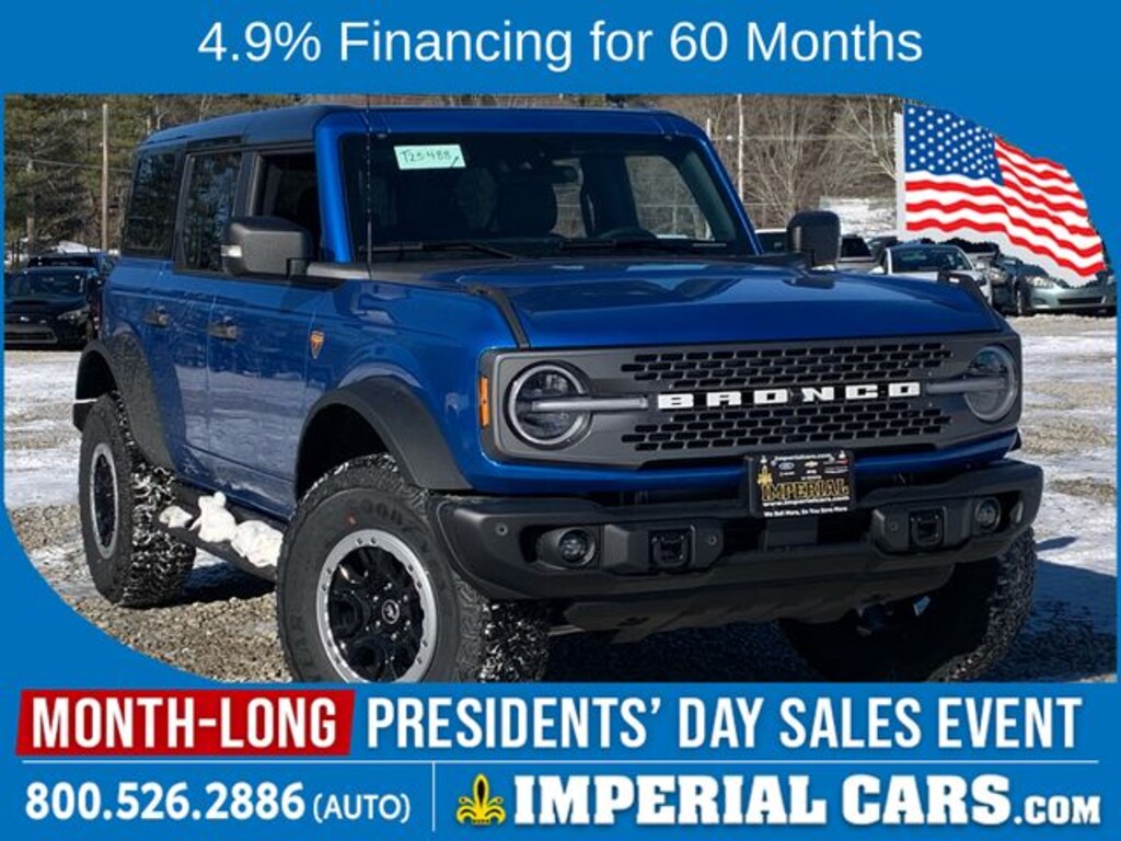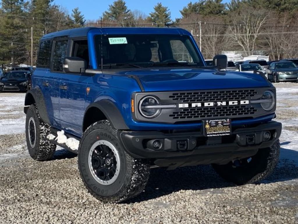 SASQUATCH PACKAGE Wheels: 17 Carbonized Gray Painted Aluminum, High Clearance Fender Flares, High Clearance Suspension, 4.7 Final Drive Ratio, electronic-locking front and rear axle, Tires: LT315/70R17 Rugged-Terrain, Position-Sensitive Bilstein Shock Absorbers, SHADOW BLACK PAINTED HARD TOP Hard Top Sound Deadening Headliner, Rear-Window Defroster & Washer, ENGINE: 2.7L ECOBOOST V6 GVWR: 6,180 lbs, TRANSMISSION: 10-SPEED AUTOMATIC remote start system, trail control, trail turn assist and trail one-pedal driving, 4.46 Axle Ratio, Rear HVAC, RAPTOR-STYLE RUNNING BOARD Replaces the standard rock rails, FRONT & REAR FLOOR LINERS W/O CARPET FLOOR MATS Custom accessory, pre-installed, Deletes carpet front and rear floor mats. Ford Badlands with Velocity Blue exterior and Black Onyx interior features a V6 Cylinder Engine with 315 HP at 5500 RPM*.