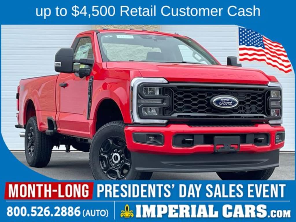 STX APPEARANCE PACKAGE 4 pickup box tie-down plates, STX fender vent badge and upgraded interior door panels, Pre-Collision Assist, Automatic Emergency Braking (AEB) and forward collision warning, Tires: LT275/70Rx18E BSW Automatic Transmission (4), Spare may not be the same as road tire, Body-Color Front Bumper, LED Box Lighting, LED Center High-Mounted Stop Lamp (CHMSL), F-250 >10K GVWR Package, Color-Coordinated Full Carpet w/Floor Mats, 360-Degree Camera Package, wired auxiliary trailer camera compatibility, Rear Parking Sensors, reverse brake assist, LED Center High-Mounted Stop Lamp (CHMSL) Camera, LED center high-mounted stop lamp (CHMSL), 360-Degree Camera, picture in picture capability, BLIS w/Cross-Traffic Alert, trailer coverage, Wheels: 18 Ebony Black Painted Aluminum, Body-Color Rear Bumper, ENGINE: 7.3L 2V DEVCT NA PFI V8 GAS, ELECTRONIC-LOCKING W/3.73 AXLE RATIO, SPARE TIRE, WHEEL, CARRIER & JACK. Ford XL with Race Red exterior and Medium Dark Slate interior features a 8 Cylinder Engine with 430 HP at 5500 RPM*.