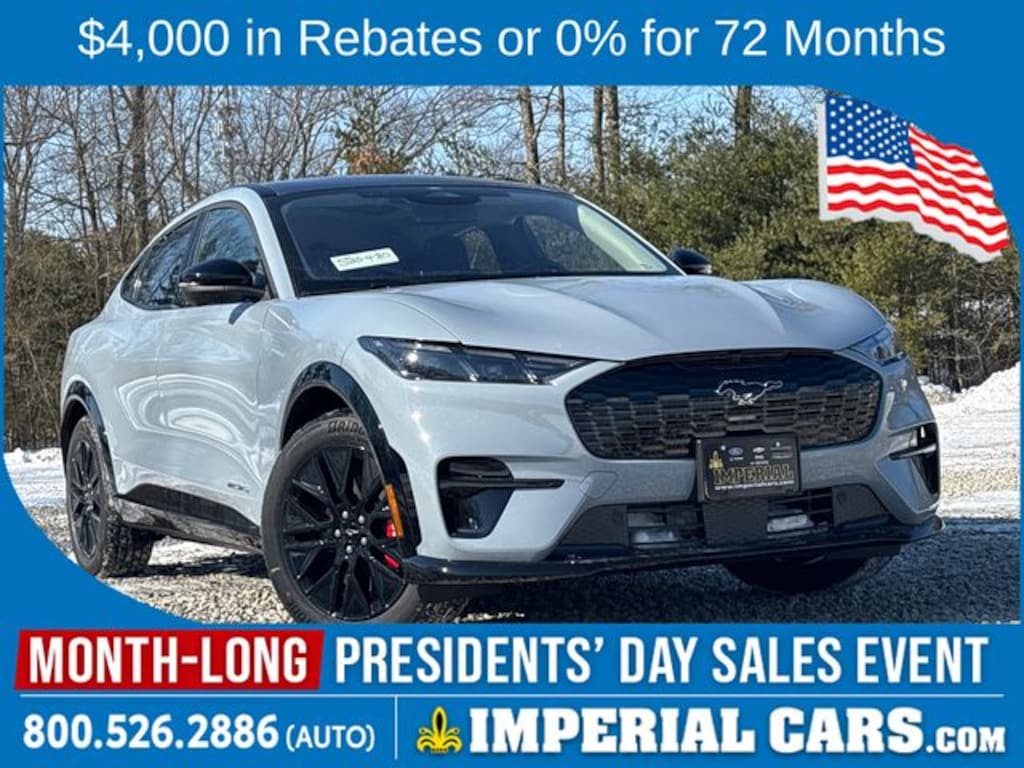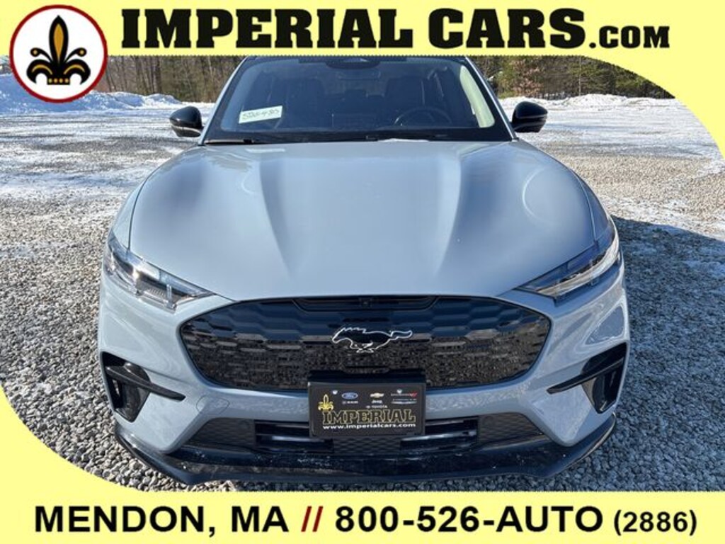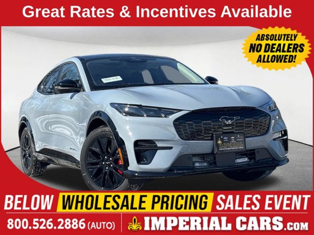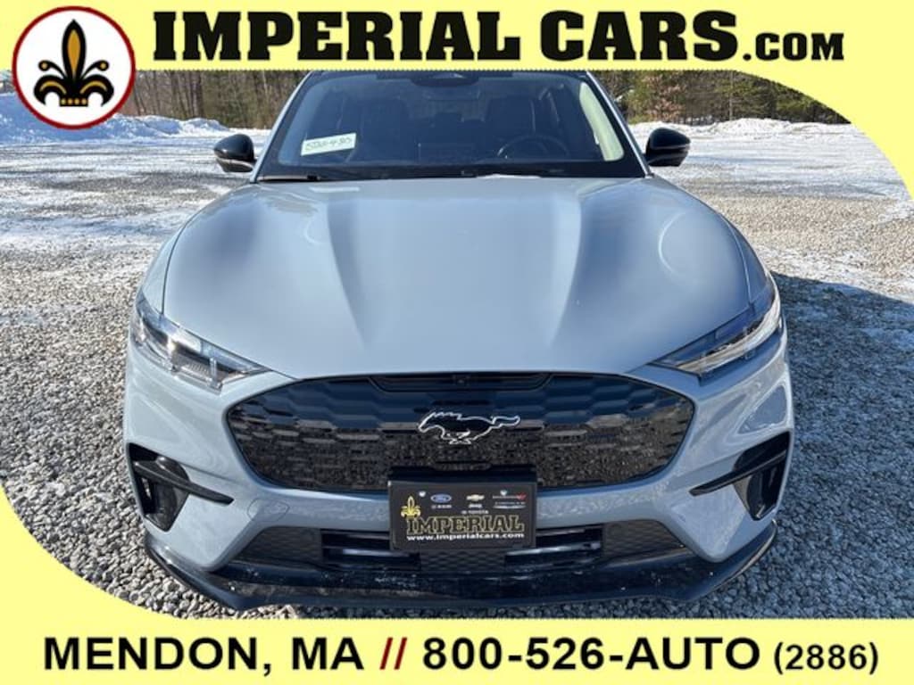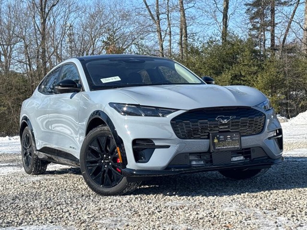 ENGINE: DUAL MOTOR (FRONT/REAR) (EAWD) (99U) 88kWh usable capacity extended range battery, SPORT APPEARANCE PACKAGE unique red accent stitching on seats, IP, door trim, steering wheel and center console lid and black painted front/rear door cladding, front/rear wheellip moldings and rear lower fascia, Wheels: 19 Monochromatic High Gloss Black-Painted, Brembo Branded Front Brakes, Red Painted Front & Rear Brake Calipers, Sport Pedals, Unique Front Fascia, body-color upper, black-painted lower and grille shield in gloss black, PANORAMIC FIXED-GLASS ROOF Infrared Reflective (IRR) windshield, BLUECRUISE EQUIPPED (1-YEAR PLAN) See ford.com/bluecruise for version details, Option to purchase 1 year of BlueCruise access at time of vehicle order, After this initial duration, customers need to purchase a subscription to continue using BlueCruise, See subscription options and pricing on ford.com/bluecruise, TRANSMISSION: SINGLE SPEED (STD). Ford Premium with Glacier Gray Metallic Tri-Coat exterior and Black Onyx interior features a Electric Motor.