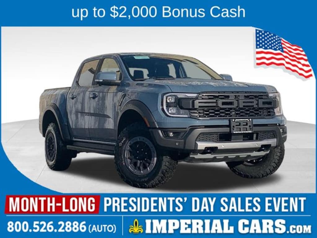 WHEELS: 17 FORGED BEADLOCK CAPABLE, TOUGH BED SPRAY-IN BEDLINER, TRANSMISSION: ELECTRONIC 10-SPEED AUTOMATIC selectable drive modes: normal, sport, tow/haul, slippery, off-road, rock crawl and Baja (STD), ENGINE: 3.0L ECOBOOST V6 auto start-stop technology (STD). Ford Raptor with Azure Gray Metallic Tri-Coat exterior and Ebony interior features a V6 Cylinder Engine with 405 HP at 5750 RPM*.