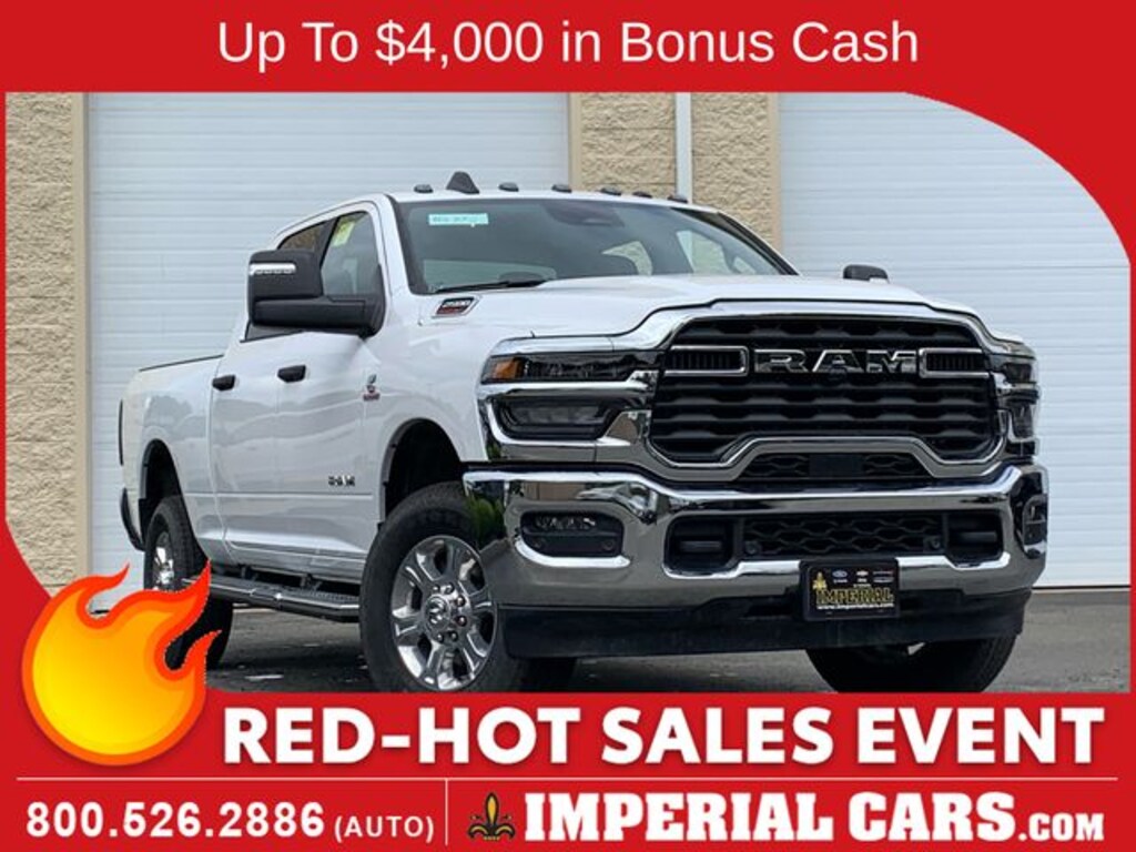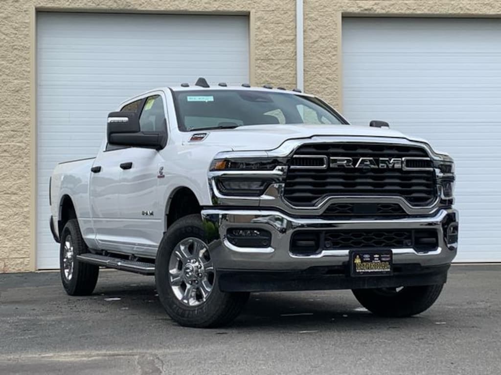 ENGINE: 6.7L I6 CUMMINS HO TURBO DIESEL Selective Catalytic Reduction (Urea), Dual 730 Amp Maintenance Free Batteries, Cummins Turbo Diesel Badge, Heavy Duty Engine Cooling, Diesel Exhaust Brake, Supplemental Heater, 3.42 Axle Ratio, Front Bumper Sight Shields, Capless Fuel Fill w/o Discriminator, GVWR: 11,040 lbs, BIG HORN LEVEL 1 PLUS EQUIPMENT GROUP Emergency Vehicle Alert System (EVAS), Glove Box Lamp, 12 Touchscreen Display, Auto Power-Folding Mirrors, Footwell Courtesy Lamp, Anti-Spin Differential Rear Axle, MOPAR Deployable Bed Step, Alexa Built-In, Forward & Reverse Utility Lights, Locking Lower Glove Box, Remote Start System, 9 Alpine Speakers w/Subwoofer, Dual Glove Boxes, 2nd Row In Floor Storage Bins, Rear View Auto Dim Mirror, Rear Dome w/On/Off Switch Lamp, LED Bed Lighting, GPS Navigation, SiriusXM w/360L, Connected Travel & Traffic Services, Foam Bottle Insert (Door Trim Panel), Big Horn IP Badge, Off-Road Info Pages, Trailer Tow Pages, HD Radio, Radio: Uconnect 5 Nav w/12.0 Display, Power Heated Folding Telescopic Mirrors, Steering Wheel Mounted Audio Controls, Air Conditioning ATC, CHROME FLAT WHEEL-TO-WHEEL SIDE STEPS, HEATED SEATS & WHEEL GROUP Heated Steering Wheel, Heated Front Seats, BLACK, PREMIUM CLOTH BUCKET SEATS Bucket Seats, Power Adjust 8-Way Driver Seat, Folding Flat Load Floor Storage, Rear 60/40 Folding Seat, Front Seat Back Map Pockets, Power 2-Way Driver Lumbar Adjust, Full Length Upgraded Floor Console, MOPAR FRONT & REAR RUBBER FLOOR MATS, TRANSMISSION: 8-SPEED TORQUEFLITE HD AUTOMATIC. Ram Big Horn with Bright White Clearcoat exterior and Black interior features a Straight 6 Cylinder Engine with 430 HP at 2800 RPM*.