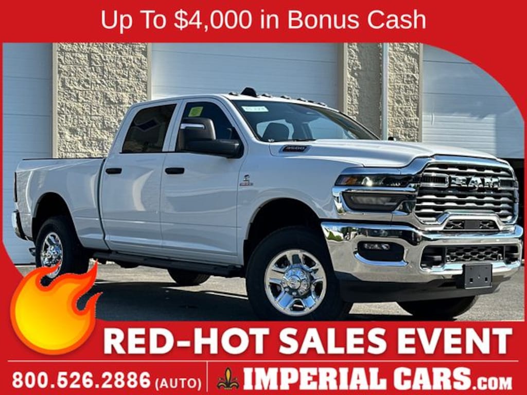 Tradesman trim, Bright White Clearcoat exterior and Black interior. WiFi Hotspot, Smart Device Integration, Keyless Start, CD Player, iPod/MP3 Input, Back-Up Camera, Turbo Charged Engine, Bed Liner, Hitch, BLACK, CLOTH 40/20/40 BENCH SEAT, ENGINE: 6.7L I6 CUMMINS HO TURBO DIES... TRANSMISSION: 8-SPEED TORQUEFLITE HD.. BED CONVENIENCE GROUP, TRADESMAN LEVEL 2 EQUIPMENT GROUP, 4x4. Warranty 5 yrs/60k Miles - Drivetrain Warranty;