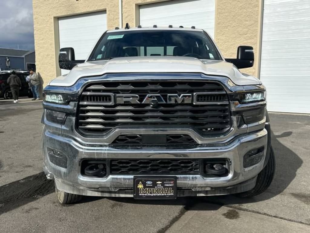 ENGINE: 6.7L I6 CUMMINS TURBO DIESEL Selective Catalytic Reduction (Urea), Dual 730 Amp Maintenance Free Batteries, Clean Idle Emissions Label, Cummins Turbo Diesel Badge, Current Generation Engine Controller, Smart Diesel Exhaust Brake, Supplemental Heater, B-20 Bio Diesel Capability, GVWR: 19,500 lbs, TRADESMAN LEVEL 2 EQUIPMENT GROUP SiriusXM Radio Service, Rear Window Defroster, For More Info, Call 800-643-2112, Power Rear Sliding Window, 12.0 Touchscreen Display, Tinted Acoustic Windshield Glass, GPS Navigation, Exterior Mirrors w/Heating Element, SiriusXM w/360L, Trailer Brake Control, Trailer Light Check, Connected Travel & Traffic Services, Mirror Running Lights, Alexa Built-In, Power-Adjustable Convex Aux Mirrors, Off-Road Info Pages, Trailer Tow Pages, Remote Start System, 400W Inverter, Disassociated Touchscreen Display, HD Radio, Black Power Heated Fold Telescope Mirrors, Radio: Uconnect 5 Nav w/12.0 Display, Exterior Mirrors w/Supplemental Signals, Exterior Mirrors Courtesy Lamps, Air Conditioning ATC w/Dual Zone Control, 115V Auxiliary Power Outlet, Power Adjust Mirrors, CHROME APPEARANCE GROUP Chrome Grille Surround, Matte Black Mesh w/Chrome Grille, Wheels: 19.5 x 6.0 Steel, Center Hub, Bright Front Bumper, TRANSMISSION: 8-SPEED TORQUEFLITE HD AUTOMATIC (DFM), BLACK TUBULAR SIDE STEPS, PARKVIEW REAR BACK-UP CAMERA. Ram Tradesman with Bright White Clearcoat exterior and Diesel Gray/Black interior features a Straight 6 Cylinder Engine with 360 HP at 2800 RPM*.