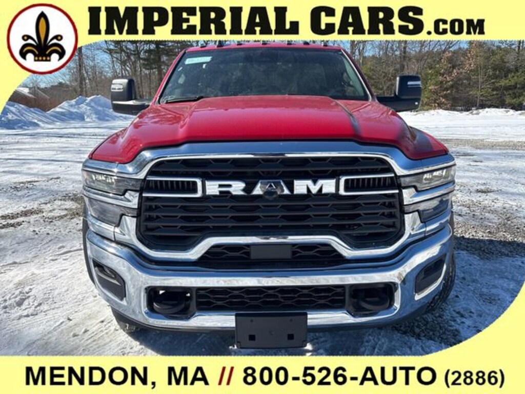 ENGINE: 6.7L I6 CUMMINS TURBO DIESEL Selective Catalytic Reduction (Urea), Dual 730 Amp Maintenance Free Batteries, Clean Idle Emissions Label, Cummins Turbo Diesel Badge, Current Generation Engine Controller, Smart Diesel Exhaust Brake, Supplemental Heater, B-20 Bio Diesel Capability, GVWR: 19,500 lbs, CHROME APPEARANCE GROUP Chrome Grille Surround, Matte Black Mesh w/Chrome Grille, Wheels: 19.5 x 6.0 Steel, Center Hub, Bright Front Bumper, TRANSMISSION: 8-SPEED TORQUEFLITE HD AUTOMATIC (DFM), TRADESMAN LEVEL 1 EQUIPMENT GROUP Rear Window Defroster, Speed Sensitive Power Locks, Black Power Heated Fold Telescope Mirrors, Exterior Mirrors w/Supplemental Signals, Upgraded Door Trim Panel, Exterior Mirrors Courtesy Lamps, Exterior Mirrors w/Heating Element, Front 1-Touch Down Power Windows, Trailer Brake Control, Trailer Light Check, Mirror Running Lights, Power Adjust Mirrors, Remote Keyless Entry, Power-Adjustable Convex Aux Mirrors, BLACK TUBULAR SIDE STEPS, PARKVIEW REAR BACK-UP CAMERA. Ram Tradesman with Flame Red Clearcoat exterior and Diesel Gray/Black interior features a Straight 6 Cylinder Engine with 360 HP at 2800 RPM*.