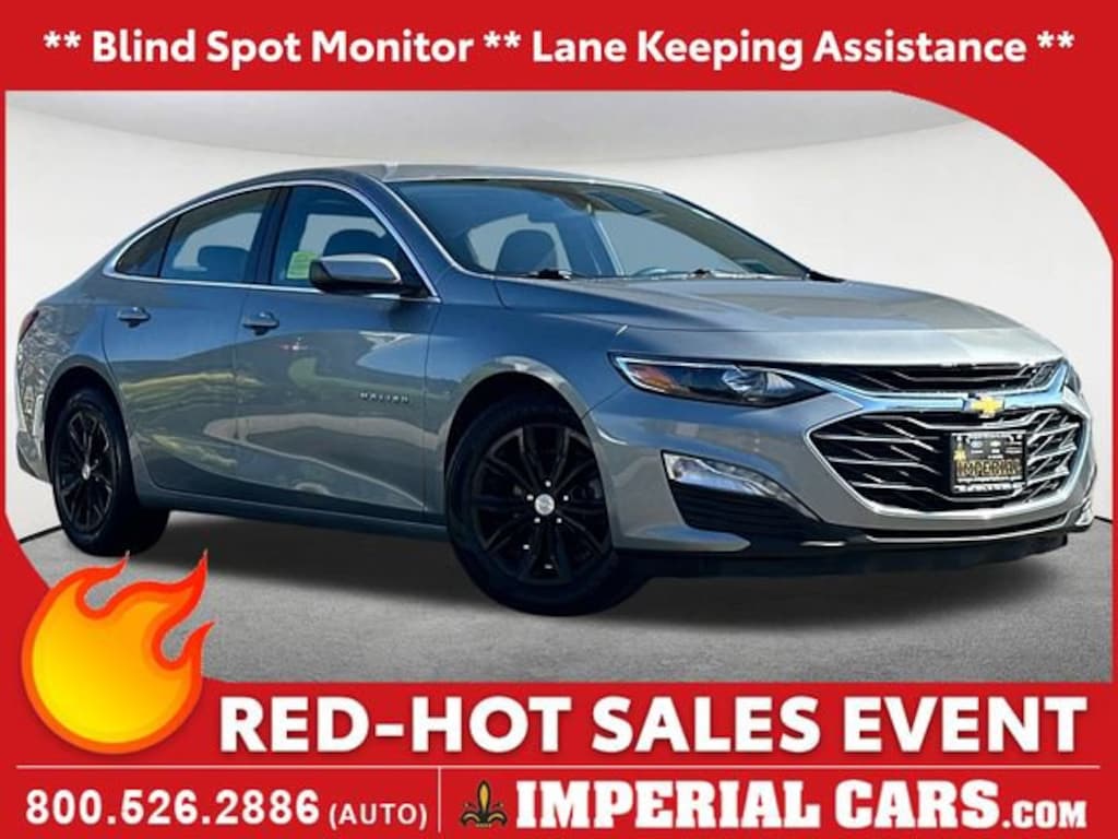 Blind Spot Monitor, Lane Keeping Assistance, Cross Traffic Alert, Apple CarPlay / Android Auto, Power Seats, Heated Seats, Backup Camera, Bluetooth, Cruise Control, Power Windows, Power Locks, Steering Wheels Radio Controls, Aluminum Wheels, Jet Black Cloth, Driver Confidence Package, Lane Change Alert w/Side Blind Zone Alert, Preferred Equipment Group 1LT, Rear Cross Traffic Alert, Rear Park Assist. Dark Ash Metallic 2023 Chevrolet Malibu LT 1LT 4D Sedan LT 1LT FWD CVTClean CARFAX. CARFAX One-Owner. 1.5L DOHC 27/35 City/Highway MPGMORE ABOUT US: Imperial Cars Purchase With Confidence: 1) Free Car Fax Vehicle History Report available for all our vehicles online. 2) Our vehicles are Imperial Certified and go through a rigorous Multi-Point vehicle inspection. 3) Bottom line pricing. 4) 5-Day or 200 Mile Vehicle Exchange Program for your total confidence. If you are not happy with it bring it back within 7 days or 200 miles and we'll give you a credit of your full purchase price toward the purchase of another vehicle. (Excludes Renewed for You vehicles.)Please be aware that the price listed for the vehicle does not include tax, title, registration, documentation fee, or any other applicable fees. However, it does include a trade-in assistance bonus of $1,000 for qualifying retailable trades with less than 10 years of use from the original in-service date. To be eligible for the advertised promotional price, you must pay in full and take delivery of the vehicle from dealer stock on the same day. For the most up-to-date information and Imperial discounts, please call or email our phone and internet team. Please note that the price cannot be combined with any other discounts or promotions and is subject to change based on the market value at any time without notice. To receive the internet special discount, please mention the promo code INTERNET1. While we strive to provide reliable information, please note that the dealer is not responsible for any misprints involving the price and/or description of any vehicle offered for sale. It is your sole responsibility to inspect and verify such information before making a purchase. We want to be transparent in our dealings, and to that end, you can call 800-526-AUTO (2886) to receive your personalized Buy-For-Price. Lastly, please note that we do not sell to wholesalers or dealers, and some of our pre-owned vehicles may be subject to unrepaired safety recalls. To check if any vehicle has unrepaired recalls, you can look up the vehicle's VIN at https://www.nhtsa.gov/recalls.