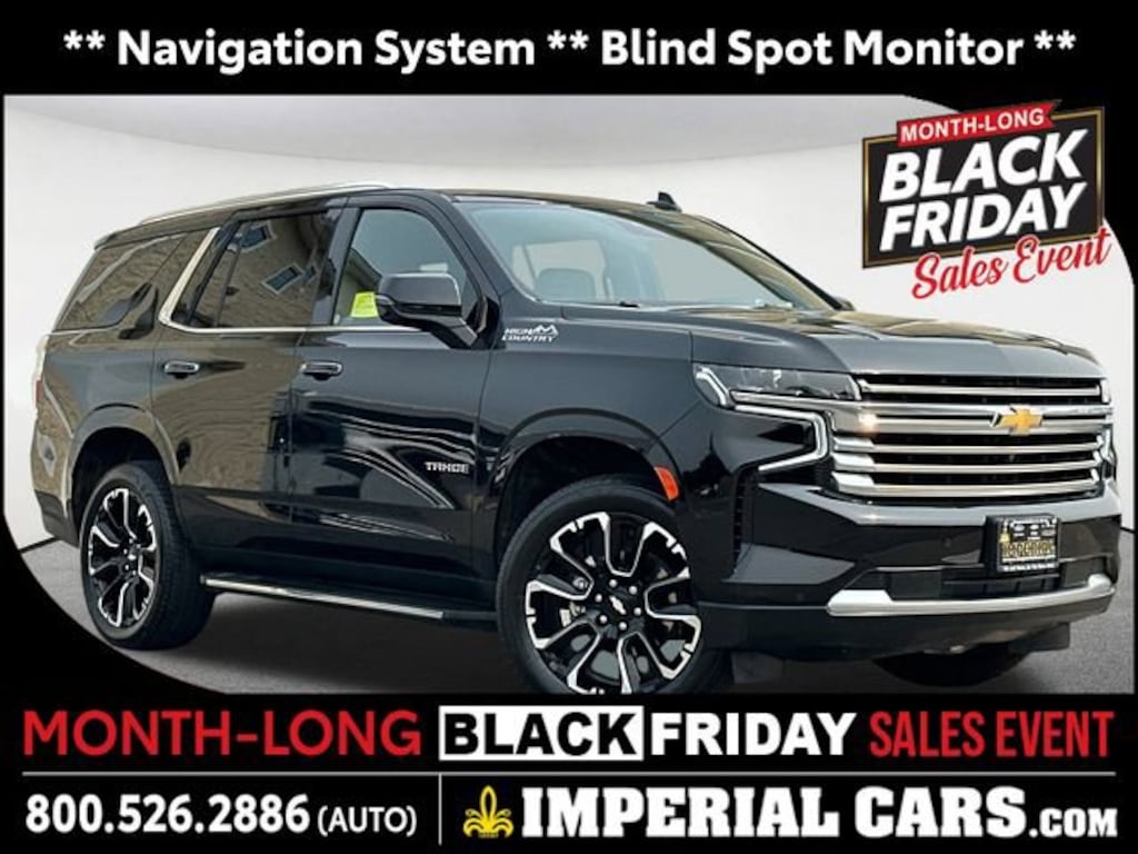 Navigation System, Blind Spot Monitor, Lane Keeping Assistance, Adaptive Cruise Control, Cross Traffic Alert, Apple CarPlay / Android Auto, Power Leather Seats, Heated Seats, Backup Camera, Bluetooth, Cruise Control, Power Windows, Power Locks, Steering Wheels Radio Controls, Aluminum Wheels, Luggage Rack, Third Row Seats, Running Boards / Side Steps, 4WD, Jet Black Leather, 15 Diagonal Multi-Color Head-Up Display, 1st & 2nd Row Color-Keyed Carpeted Floor Mats, 2-Speed Active Electronic AutoTrac Transfer Case, 3rd Row 60/40 Power-Folding Split-Bench Seat, Adaptive Cruise Control, Bose 10-Speaker Centerpoint Surround Audio Sys Ft, Bright Front & Rear Door Sill Plates, Chrome Door Handles w/Body-Color Strip, Color-Keyed Carpeting Floor Covering, Driver & Front Outboard Passenger Airbags, Dual Exhaust System, Enhanced Automatic Emergency Braking, Enhanced Driver Information Center, Floor Console, Hands-Free Rear Power Programmable Liftgate, HD Surround Vision, Heated 2nd Row Outboard Seats, Heated Steering Wheel, Hill Descent Control, Inside Rearview Auto-Dimming Rear Camera Mirror, Lane Change Alert w/Side Blind Zone Alert, LED Daytime Running Lamps, License Plate Front Mounting Package, Memory Settings, Navigation System, Outside Heated Power-Adjustable Mirrors, Power Release 2nd Row Bucket Seats, Power Tilt & Telescopic Steering Column, Preferred Equipment Group 3LZ, Rear Camera Mirror Washer, Rear Cross Traffic Alert, Rear Pedestrian Alert, Remote Start, Safety Alert Seat, SiriusXM w/360L, Universal Home Remote, Wireless Charging, Wrapped Steering Wheel. Black 2024 Chevrolet Tahoe High Country 4D Sport Utility High Country 4WD 10-Speed Automatic with OverdrivePriced below KBB Fair Purchase Price! Clean CARFAX. CARFAX One-Owner. EcoTec3 6.2L V8 Odometer is 11433 miles below market average!MORE ABOUT US: Imperial Cars Purchase With Confidence: 1) Free Car Fax Vehicle History Report available for all our vehicles online. 2) Our vehicles are Imperial Certified and go through a rigorous Multi-Point vehicle inspection. 3) Bottom line pricing. 4) 5-Day or 200 Mile Vehicle Exchange Program for your total confidence. If you are not happy with it bring it back within 7 days or 200 miles and we'll give you a credit of your full purchase price toward the purchase of another vehicle. (Excludes Renewed for You vehicles.)Please be aware that the price listed for the vehicle does not include tax, title, registration, documentation fee, or any other applicable fees. However, it does include a trade-in assistance bonus of $1,000 for qualifying retailable trades with less than 10 years of use from the original in-service date. To be eligible for the advertised promotional price, you must pay in full and take delivery of the vehicle from dealer stock on the same day. For the most up-to-date information and Imperial discounts, please call or email our phone and internet team. Please note that the price cannot be combined with any other discounts or promotions and is subject to change based on the market value at any time without notice. To receive the internet special discount, please mention the promo code INTERNET1. While we strive to provide reliable information, please note that the dealer is not responsible for any misprints involving the price and/or description of any vehicle offered for sale. It is your sole responsibility to inspect and verify such information before making a purchase. We want to be transparent in our dealings, and to that end, you can call 800-526-AUTO (2886) to receive your personalized Buy-For-Price. Lastly, please note that we do not sell to wholesalers or dealers, and some of our pre-owned vehicles may be subject to unrepaired safety recalls. To check if any vehicle has unrepaired recalls, you can look up the vehicle's VIN at https://www.nhtsa.gov/recalls.