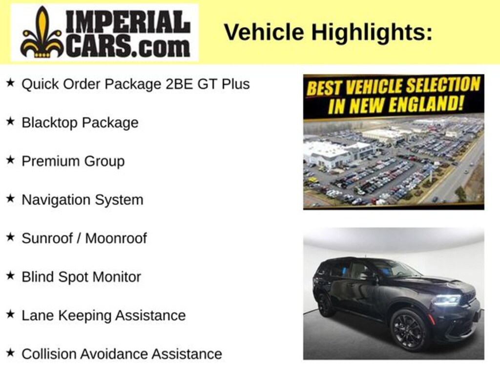Thank you for your interest in this used 2022 Dodge Durango GT SUV on the lot at Imperial Cars! This Durango GT is equipped with a V-6 cyl engine and 8-Speed Automatic transmission. Questions about this Durango? The experienced team at Imperial Cars is just a phone call away! Contact us at (800) 526-2886 or come in for a test drive! Imperial Cars is your Milford, Framingham, Worcester MA & Providence RI area Dodge dealership!