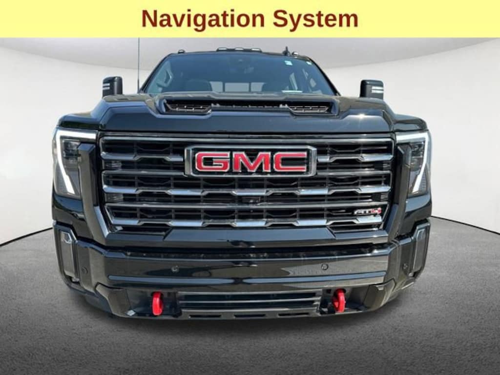 Navigation System, Sunroof / Moonroof, Blind Spot Monitor, Lane Keeping Assistance, Adaptive Cruise Control, Cross Traffic Alert, Apple CarPlay / Android Auto, Power Leather Seats, Heated Seats, Backup Camera, Bluetooth, Cruise Control, Power Windows, Power Locks, Steering Wheels Radio Controls, Aluminum Wheels, Running Boards / Side Steps, Towing Package, 10-Speed Automatic, 4WD, Black Leather, 120-Volt Bed Mounted Power Outlet, 120-Volt Instrument Panel Power Outlet, 2 Charge-Only Rear USB Ports, 2 Charge/Data USB Ports Inside Center Console, 2 USB Ports, 2-Speed Active Transfer Case, Adaptive Cruise Control, AT4 Preferred Package, Bed View Camera w/2 Trailer Camera Provisions, Bose Premium 7-Speaker Sound System, Deep-Tinted Glass, Electric Rear-Window Defogger, Floor-Mounted Center Console, Front Prem Floor Liners w/Removable Carpet Insert, Front Rain-Sensing Wipers, Gloss Black Header Grille & Grille Insert Bars, GMC Connected Access Capable, HD Surround Vision, Heated 2nd Row Outboard Seats, Heated Driver & Front Outboard Passenger Seats, Hill Descent Control, Inside Rearview Auto-Dimming Rear Camera Mirror, Integrated Trailer Brake Controller, Keyless Open & Start, LED Cargo Area Lighting, LED Smoked Amber Roof Marker Lamps, Manual Tilt-Wheel/Telescoping Steering Column, Multicolor 15 Diagonal Head-Up Display, OnStar & GMC Connected Services Capable, Power Front Passenger Windows w/Express Up/Down, Power Sliding Rear Window w/Defogger, Preferred Equipment Group 4SB, Push Button Start, Rear Cross Traffic Alert, Rear Prem Floor Liners w/Removable Carpet Insert, Rear Wheelhouse Liners, Remote Vehicle Starter System, Safety Alert Seat, SiriusXM w/360L, Spray-On Bedliner w/AT4 Logo, Steering Wheel Audio Controls, Technology Package, Trailer Cam Provisions & Trailer Viewing Software, Trailer Side Blind Zone Alert, Ultrasonic Front & Rear Park Assist, Unauthorized Entry Theft-Deterrent System, Universal Home Remote, Ventilated Driver & Front Passenger Seats, Wireless Charging, Wireless Phone Projection, X31 Off-Road Package. Onyx Black 2024 GMC Sierra 2500HD AT4 4D Crew Cab AT4 4WD 10-Speed Automatic