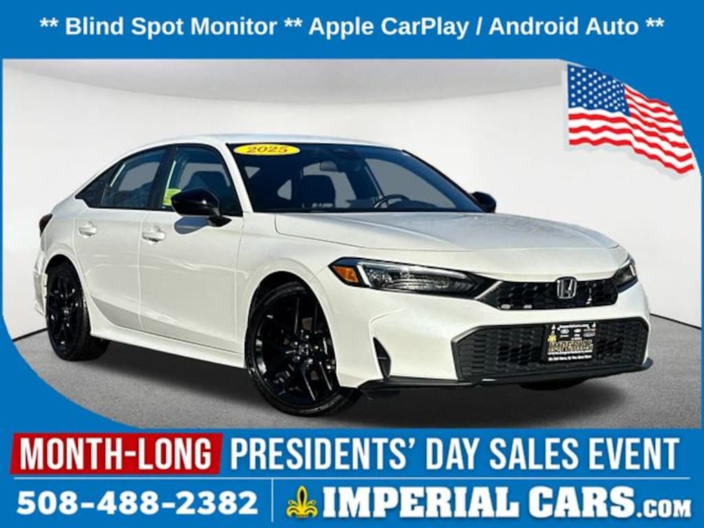 Thank you for your interest in this used 2025 Honda Civic Sport Sedan on the lot at Imperial Cars! This Civic Sport is equipped with a I4 DOHC 16V engine and CVT transmission. Questions about this Civic? The experienced team at Imperial Cars is just a phone call away! Contact us at (800) 526-2886 or come in for a test drive! Imperial Cars is your Milford, Framingham, Worcester MA & Providence RI area Honda dealership!