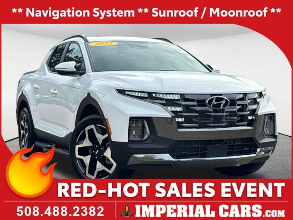 Thank you for your interest in this used 2022 Hyundai Santa Cruz Limited Truck on the lot at Imperial Cars! This Santa Cruz Limited is equipped with a I4 engine and Shiftronic transmission. Questions about this Santa Cruz? The experienced team at Imperial Cars is just a phone call away! Contact us at (800) 526-2886 or come in for a test drive! Imperial Cars is your Milford, Framingham, Worcester MA & Providence RI area Hyundai dealership!