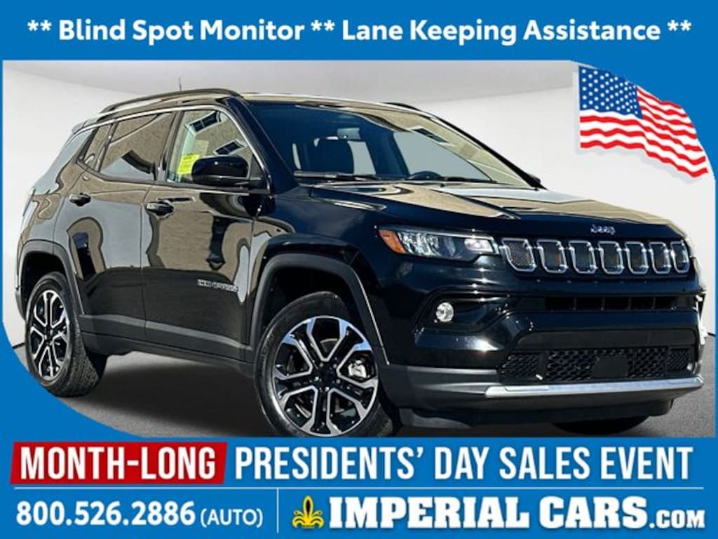 Thank you for your interest in this used 2022 Jeep Compass Limited SUV on the lot at Imperial Cars! This Compass Limited is equipped with a I-4 cyl engine and 9-Speed 948TE Automatic transmission. Questions about this Compass? The experienced team at Imperial Cars is just a phone call away! Contact us at (800) 526-2886 or come in for a test drive! Imperial Cars is your Milford, Framingham, Worcester MA & Providence RI area Jeep dealership!
