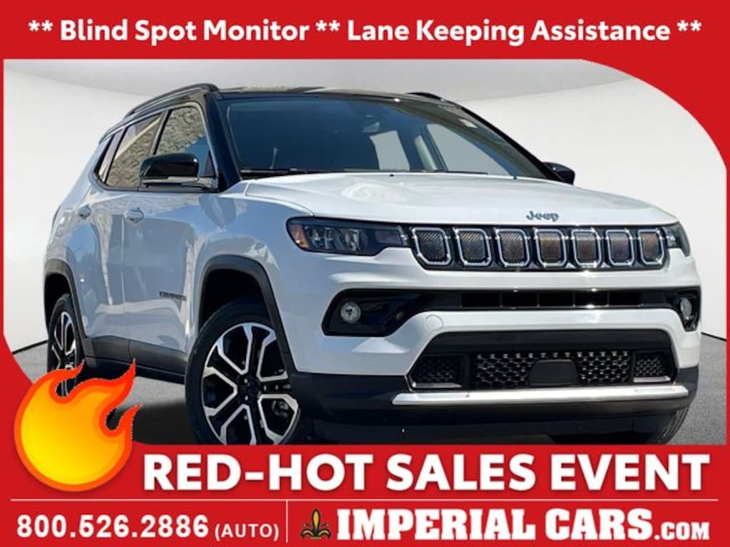 Thank you for your interest in this used 2022 Jeep Compass Limited SUV on the lot at Imperial Cars! This Compass Limited is equipped with a I-4 cyl engine and 9-Speed 948TE Automatic transmission. Questions about this Compass? The experienced team at Imperial Cars is just a phone call away! Contact us at (800) 526-2886 or come in for a test drive! Imperial Cars is your Milford, Framingham, Worcester MA & Providence RI area Jeep dealership!