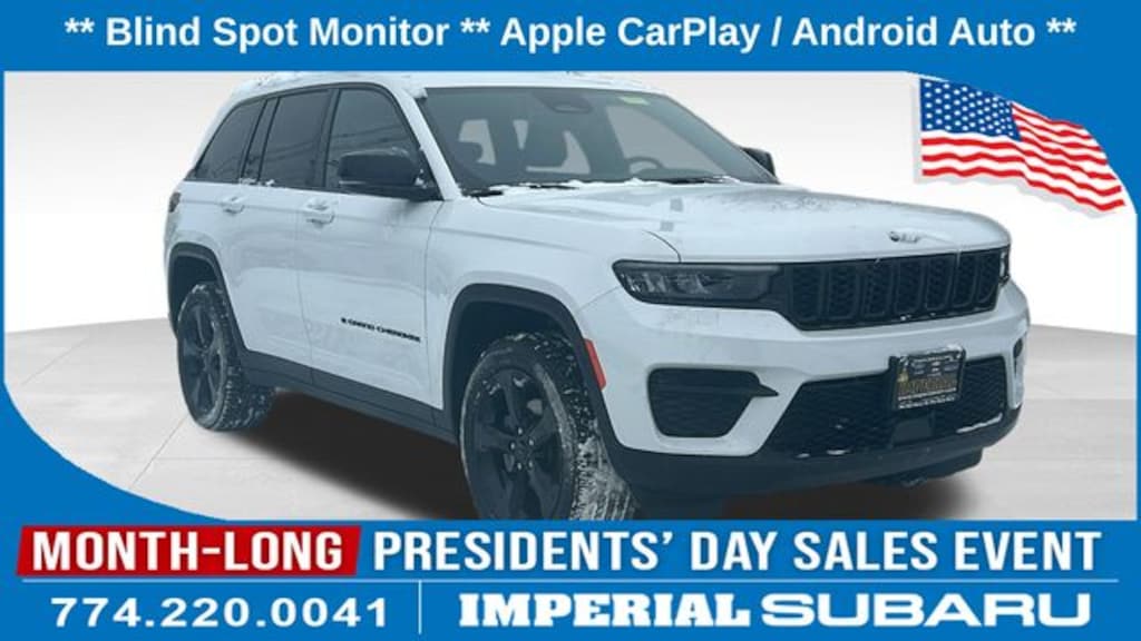 Thank you for your interest in this used 2023 Jeep Grand Cherokee Laredo SUV on the lot at Imperial Cars! This Grand Cherokee Laredo is equipped with a V-6 cyl engine and 8-Speed Automatic transmission. Questions about this Grand Cherokee? The experienced team at Imperial Cars is just a phone call away! Contact us at (800) 526-2886 or come in for a test drive! Imperial Cars is your Milford, Framingham, Worcester MA & Providence RI area Jeep dealership!