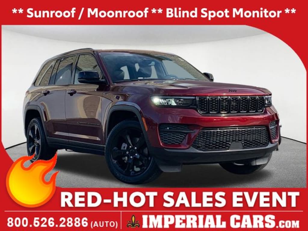 Recent Arrival! Sunroof / Moonroof, Blind Spot Monitor, Lane Keeping Assistance, Apple CarPlay / Android Auto, Adaptive Cruise Control, Power Leather Seats, Cross Traffic Alert, Heated Seats, Backup Camera, Bluetooth, Cruise Control, Power Windows, Power Locks, Steering Wheels Radio Controls, Aluminum Wheels, Luggage Rack, 4WD, 115-Volt Auxiliary Power Outlet, Altitude Appearance Package, Black Headliner, Delete Laredo Badge, Gloss Black Exterior Accents, Gloss Black Roof Rails, Leather-Faced Bucket Seats (DISC), Power Liftgate, Quick Order Package 22B Altitude (DISC), Rain-Sensing Windshield Wipers, Remote Start System, Secondary Active Grille Shutters, Selectable Tire Fill Alert, Wheels: 20" x 8.0" Gloss Black Aluminum, Wireless Charging Pad. Velvet Red Pearlcoat 2023 Jeep Grand Cherokee Altitude 4D Sport Utility Altitude 4WD 8-Speed Automatic