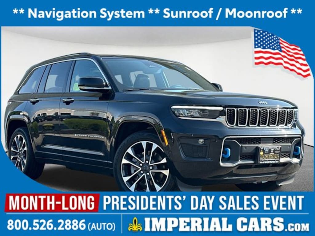 Thank you for your interest in this used 2023 Jeep Grand Cherokee 4xe Overland SUV on the lot at Imperial Cars! This Grand Cherokee 4xe Overland is equipped with a I-4 cyl engine and 8-Speed Automatic transmission. Questions about this Grand Cherokee 4xe? The experienced team at Imperial Cars is just a phone call away! Contact us at (800) 526-2886 or come in for a test drive! Imperial Cars is your Milford, Framingham, Worcester MA & Providence RI area Jeep dealership!