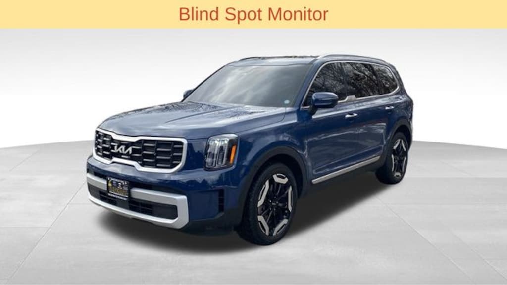 The Telluride's striking Midnight Lake Blue exterior, complemented by the Blue interior and Cross Bars, creates a bold and sophisticated presence. The Auto-Dimming Mirror with HomeLink and Carpeted Floor Mats add an extra touch of refinement to this well-appointed vehicle.