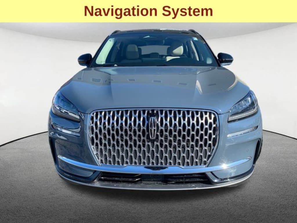 The Corsair Premiere's striking Whisper Blue Metallic Clearcoat exterior is complemented by the stylish Black Roof Rack Side Rails, creating a bold and sophisticated presence. Step inside the cabin and immerse yourself in the comfort of the Lincoln Soft Touch Heated Front Captain's Chairs, the Heated Steering Wheel, and the Panoramic Vista Roof with Power Shade.