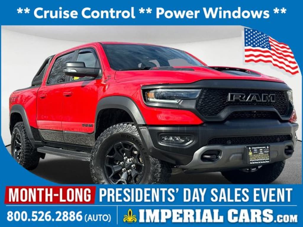 Thank you for your interest in this used 2021 Ram 1500 TRX Truck Crew Cab on the lot at Imperial Cars! This 1500 TRX is equipped with a V-8 cyl engine and 8-Speed Automatic transmission. Questions about this 1500? The experienced team at Imperial Cars is just a phone call away! Contact us at (800) 526-2886 or come in for a test drive! Imperial Cars is your Milford, Framingham, Worcester MA & Providence RI area Ram dealership!