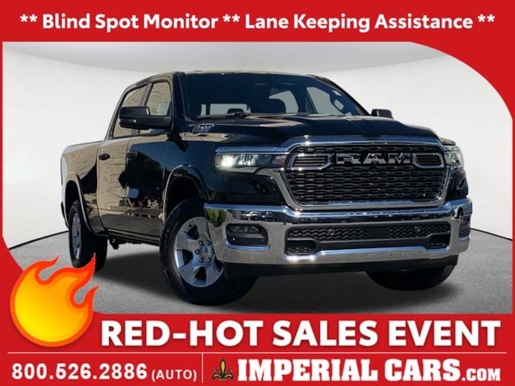Recent Arrival! Blind Spot Monitor, Lane Keeping Assistance, Apple CarPlay / Android Auto, Adaptive Cruise Control, Cross Traffic Alert, Power Seats, Heated Seats, Backup Camera, Bluetooth, Cruise Control, Power Windows, Power Locks, Steering Wheels Radio Controls, Aluminum Wheels, 115V Auxiliary Power Outlet, 2nd Row In Floor Storage Bins, 400W Inverter, Auto Power-Folding Mirrors, Auto-Dimming Exterior Driver Mirror, Auto-Dimming Rear-View Mirror, Big Horn Level 1 Equipment Group, Black Exterior Mirrors, Black Premium Power Mirrors, Convex Wide-Angle Exterior Mirror Insert, Exterior Mirrors Courtesy Lamps, Exterior Mirrors w/Heating Element, Exterior Mirrors w/Supplemental Signals, Glove Box Lamp, Heated Front Seats, Heated Steering Wheel, Leather Wrapped Steering Wheel, Power 2-Way Driver Lumbar Adjust, Power Adjust 8-Way Driver Seat, Power Adjustable Pedals, Quick Order Package 21Z Big Horn, Rear Power Sliding Window, Rear Window Defroster, Steering Wheel Mounted Audio Controls, Sun Visors w/Illuminated Vanity Mirrors, Universal Garage Door Opener. Diamond Black Crystal Pearlcoat 2025 Ram 1500 Big Horn/Lone Star 4D Crew Cab Big Horn/Lone Star 4WD 8-Speed Automatic