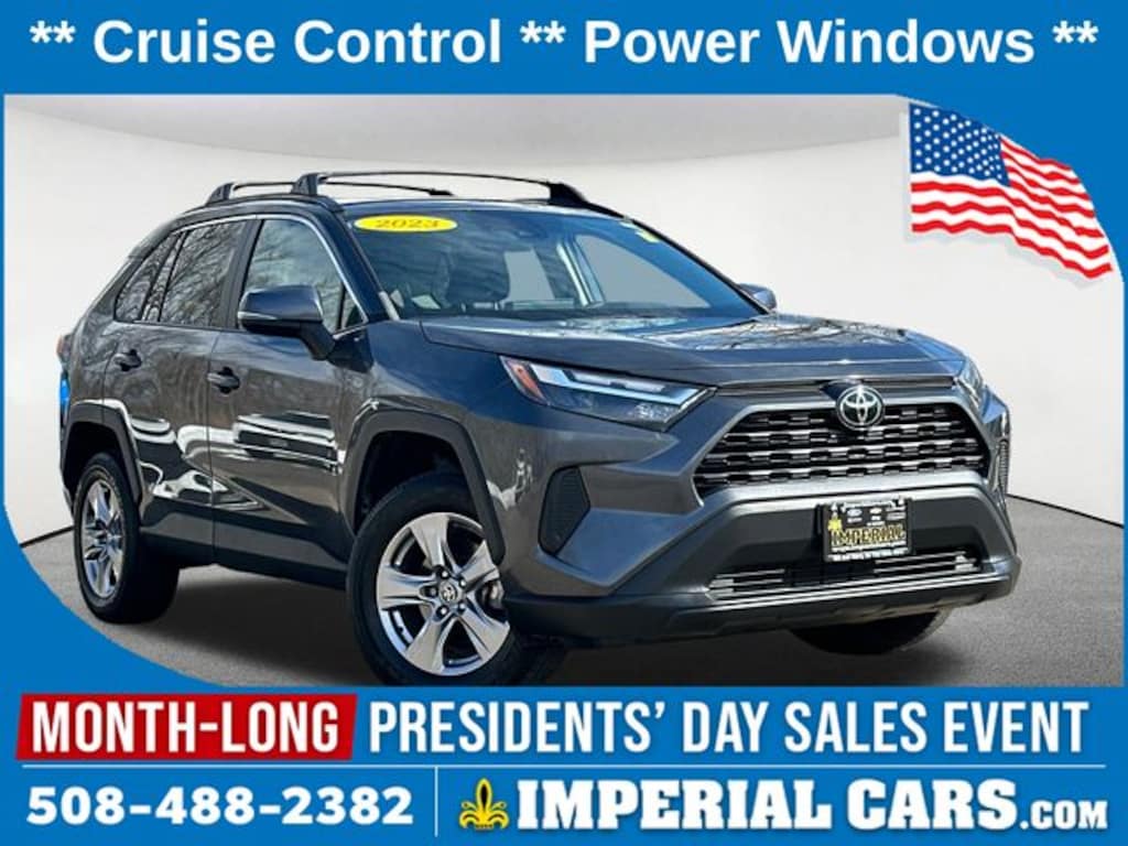 Thank you for your interest in this used 2023 Toyota RAV4 XLE SUV on the lot at Imperial Cars! This RAV4 XLE is equipped with a 4-Cylinder DOHC Dual VVT-i engine and 8-Speed Automatic transmission. Questions about this RAV4? The experienced team at Imperial Cars is just a phone call away! Contact us at (800) 526-2886 or come in for a test drive! Imperial Cars is your Milford, Framingham, Worcester MA & Providence RI area Toyota dealership!