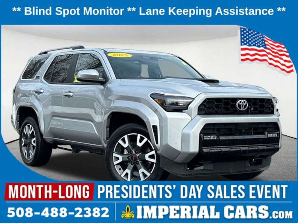 Thank you for your interest in this used 2025 Toyota 4Runner TRD Sport SUV on the lot at Imperial Cars! This 4Runner TRD Sport is equipped with a 4-Cylinder engine and 8-Speed Automatic transmission. Questions about this 4Runner? The experienced team at Imperial Cars is just a phone call away! Contact us at (800) 526-2886 or come in for a test drive! Imperial Cars is your Milford, Framingham, Worcester MA & Providence RI area Toyota dealership!